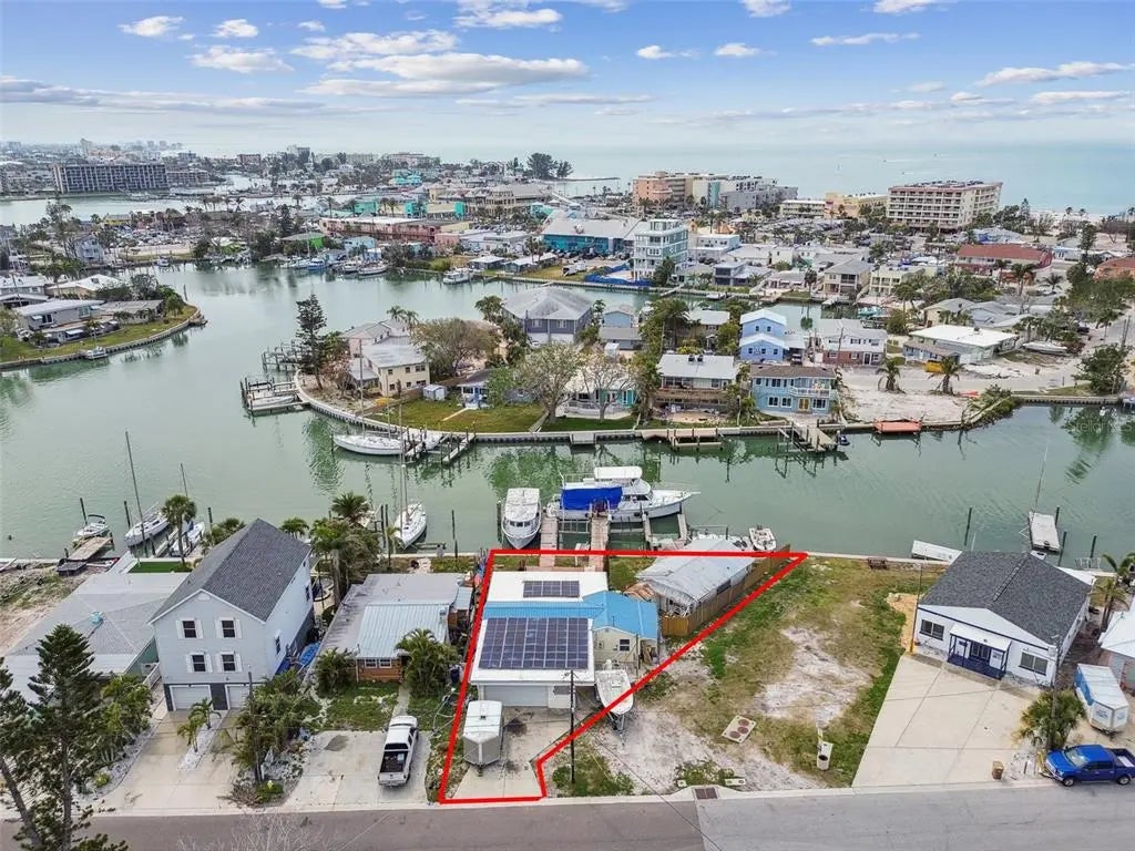 Prime Waterfront Development Opportunity – Double Lot with 104' of Waterfront near John’s Pass in Madeira Beach! This is a rare chance to secure TWO parcels (sold together, to be combined at closing) in one of the most desirable boating communities on all of Florida’s Gulf Coast. Zoned to allow a duplex or generously sized single-family home, this oversized double lot offers maximum flexibility for a high-end custom build or a lucrative income-producing property. With room for a pool and plenty of premium outdoor living space, the possibilities are endless. This site features 104 feet of deep waterfront, THREE private docks, and quick access to the Gulf, making it a standout property for buyers seeking luxury coastal living and truly, the Ultimate Boater's Dream. Just one canal north of iconic John’s Pass Village and Boardwalk, residents will enjoy kayaking or paddle-boarding to the sand bar, a quick run to Egmont Key, or spending the day offshore fishing on some of the best waters Florida has to offer. Located within walking distance to the beach, shops, restaurants, and entertainment, this property offers the lifestyle today’s buyers crave—with the added bonus of being centrally located to Tampa International Airport, downtown St. Pete, and Tampa Bay's booming sports and cultural scene. With only one neighboring residence and a waterfront footprint rarely seen at this price point, this is a high-potential build site being offered below land value. Whether you’re building to sell, rent, or hold, this is the kind of opportunity that delivers long-term upside and immediate appeal. The property currently has two existing SFHs along with 44 solar panels, negotiable with offer. This property is being shown by Appointment Only. Call to schedule your appointment and claim your piece of Paradise today - Life is Short, Build the Beach House!